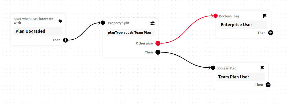 The script initiates upon the activation of the Plan Upgraded interaction. Additionally, within the event properties, the planType is designated as either "Team Plan" or "Enterprise Plan" upon triggering the interaction.